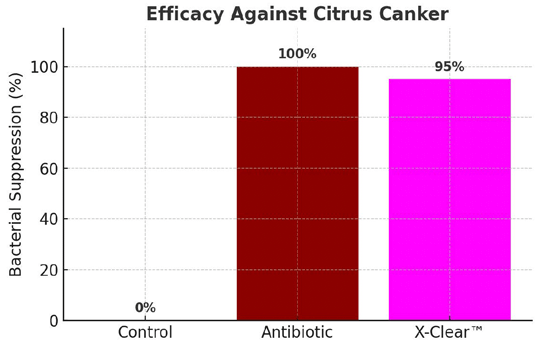 • X-Clear™ demonstrated 95% efficacy (in vitro) compared to 100% with the reference ATB treatment, offering growers a natural, sustainable, and compliant alternative.